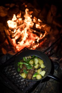 Liekitettyä hirveä nuotiolla