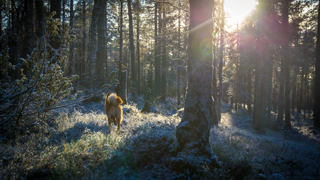 Suurten kuusten ryhmää näkösuojana käyttäen koitan ajoittaa jäätyneen maan rasahdukset koiran haukun rytmiin. Kun GPS näyttää koiran etäisyydeksi sata metriä, otan vielä joitakin askelia, kunnes näen kiivaasti haukkuvan Joikun: sen hievahtamaton katse ja sulossoinnut kohdistuvat jyrkästi yläviistoon, kohti valtavan lakkapääpetäjän latvaa! Laskeudun vatsalleni, työnnän reppua hiukan vasemmalle puolelleni, ja lähden sieltä hakemaan tähtäystä latvan kärjessä aamuaurinkoa odottavaan aarniometsän kuninkaaseen.