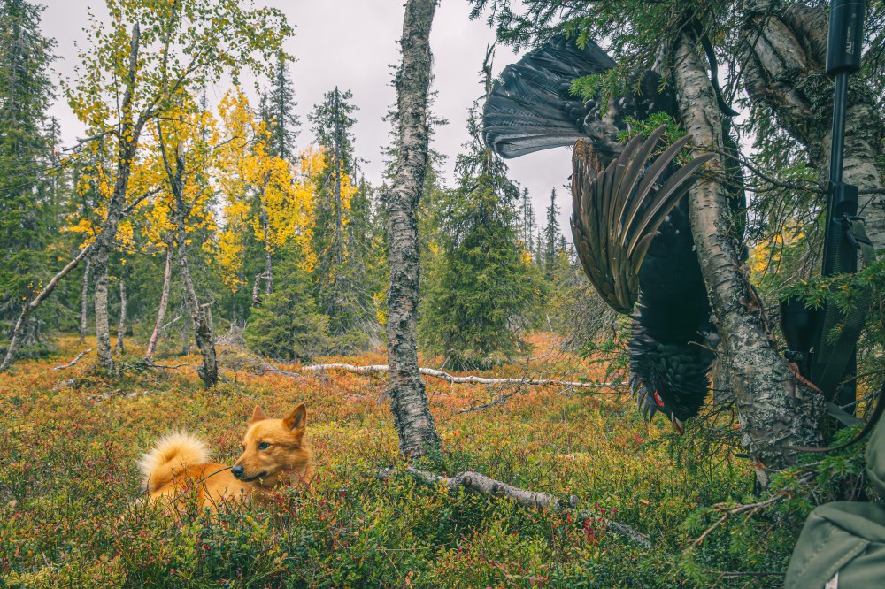 Ensimmäisen suomenpystykorvani Rockyn kanssa metsästin lähinnä vain haulikolla, luottaen nopean laukaukseni tarkkuuteen. Ammuin kyllä sillekin useita lintuja haukkuun ”puhdasoppisesti”, mutta se ei ollut minulle itse tarkoitus. En koskaan haukun alkaessa aikaillut, en kontannut tai ryöminyt haukuille, vaan usein jopa kiirehdin ampumatilanteeseen, peläten tilanteen karkaamista. Koin usein ylivoimaisen vaikeaksi yrittää nähdä linnut jo puuhun, joten malttamattomana menin useimmiten vain peitteistä kohtaa pitkin haulikkohollin etäisyydelle, josta siirryin suoraan ampumavalmiudessa näkösälle. Kun lintu levitti siipensä karatakseen, rävähti hauliparvi sen niskaan.